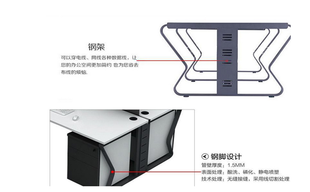 典致西安辦公家具中的蝴蝶型鋼架,有強大的走線功能,有精美的外觀,成為2015年鋼架辦公桌的新寵。下圖是剖開看的鋼架細(xì)節(jié)圖。