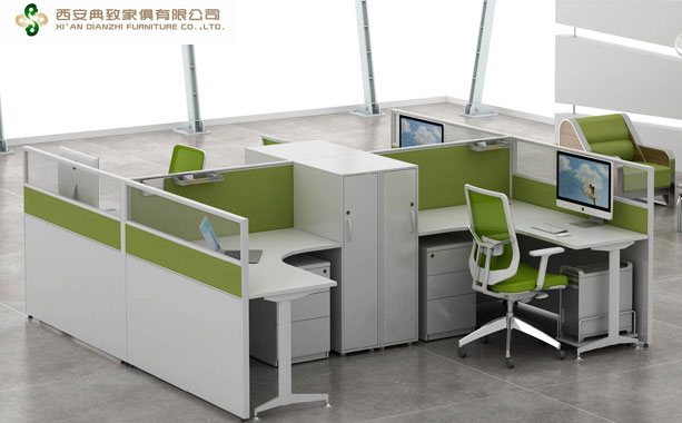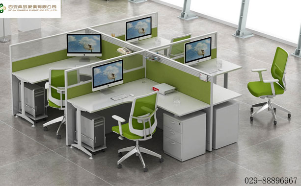 本款屏風辦公位為F型四人辦公位,方便員工之間的交談,更好的提高工作效率。