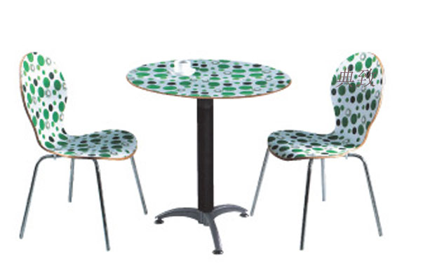 這款洽談桌用圓形的桌面加上鋼木結合的特點,給人以時尚的感覺,田園風格的 圖案更是給人清新舒適的感覺。